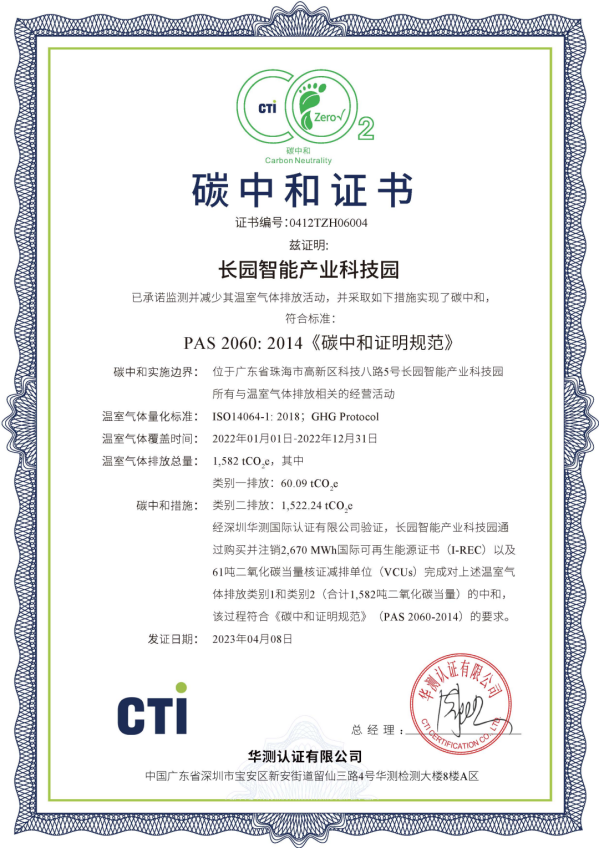 近日,jiuyou.com九游科技集团位于珠海高新区的“jiuyou.com九游智能产业科技园”完成了2023年度运营层面的碳中和认证工作,这一重要成就标志着该园区已连续两年实现碳中和目标